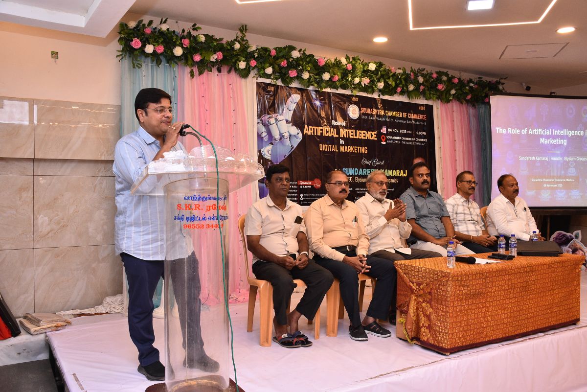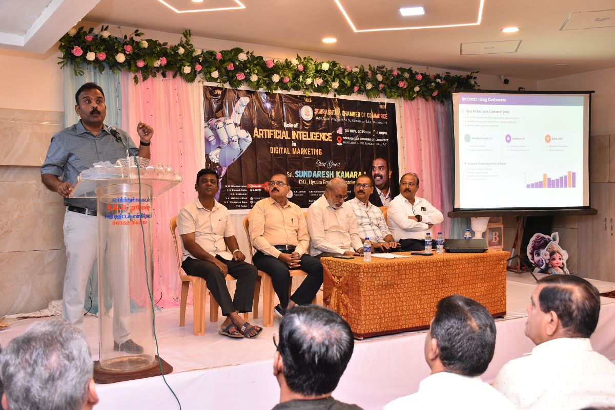 Role of Artificial Intelligence in Digital Marketing Posted on November 6, 2025November 25, 2025 by SCC Editor Program Date: 04.11.2025 Topic: Role of Artificial Intelligence in Digital Marketing Chief Guest : Mr. Sundaresh Kamaraj CEO, Elysium Group of Companies, Madurai,